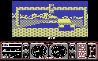 Ora, immaginate di trasportare quel pur spoglio mondo di poligoni sull’8 bit Commodore. Innanzitutto, via i colori che non fossero il blu e il giallo e successivamente una bella dose di bromuro a un titolo che già non era noto per il fattore adrenalinico. Insomma, non gli potevi manco rimproverare molto, al povero C64 (la versione ZX Spectrum era comunque superiore). Ciononostante, non farsi sanguinare i bulbi oculari davanti a quei 10 fps scarsi era complicato. Lo sapeva anche Tengen (responsabile, in tutti i sensi, delle conversioni) quanto facesse cagare, tanto che non pubblicò Hard Drivin’ singolarmente ma lo incluse come parte di una compilation. Su Lemon 64 ha una media di 1,72 su 10.