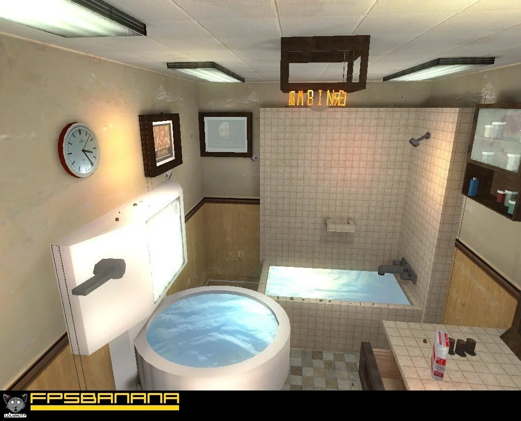 Non solo potevi modificare le skin dei giocatori e vedere dei Ghostface, dei Batman o dei Pippo farsi esplodere a suon di lanciagranate, ma le mappe cominciarono ad espandersi a livelli di follia ragguardevoli (sebbene non tutte nascessero nella community dei modder di Half-Life, ad essere sinceri). Tra quelle che si impressero nella mia memoria le Rats: mappe in cui ci si combatteva in una gigantesca cucina, o camera da letto o bagno, create in scala tale da rendere i giocatori grossi come topi e piene di trappole ambientali da attivare con i vari interruttori. La goduria di far cadere gli avversari nel lavandino con un esplosivo e finirli attivando il tritarifiuti era insuperabile.
