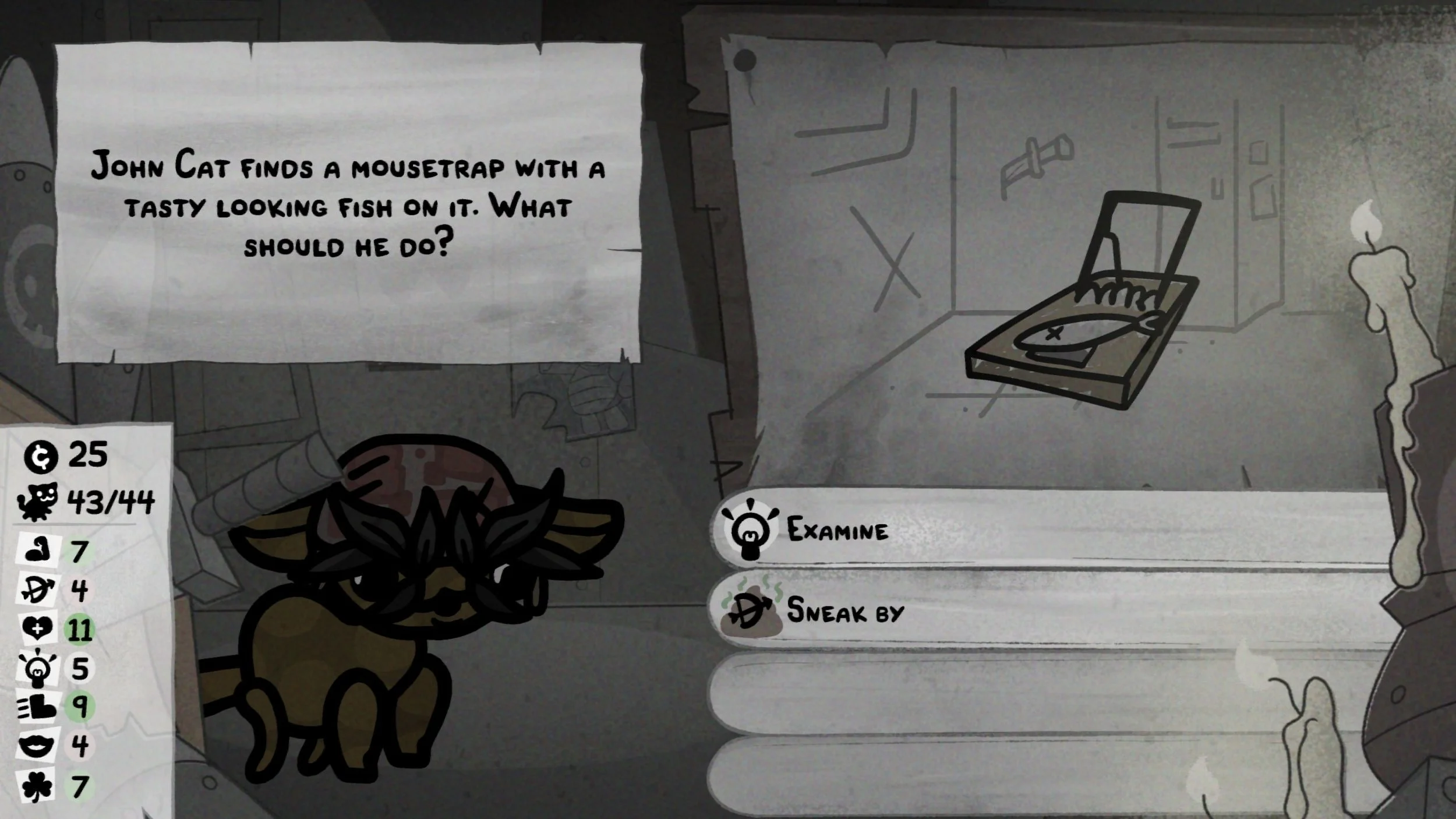 Il miracolo, per me, e ancora una volta è eredità della precedente esperienza di McMillen e Glaiel, è che Mewgenics riesce a evitare il temuto effetto déjà vu tipico di questi giochini che ti fanno ricominciare sempre da zero – quell’orrenda sensazione per cui dopo la cinquantesima run cominci a temere i primi due/tre livelli/aree/biomi perché sono ripetitivi/sempre uguali/poco interessanti. Mewgenics butta in campo abbastanza casualità fin dall’inizio (fin dalla “creazione dei personaggi”, addirittura) da rendere i primi combattimenti e incontri vari un rush costante di adrenalina e dopamina e tutti quegli altri ormoni che ti fanno godere. Non stai uccidendo i soliti topini e moschine con 1HP perché gli autori non hanno trovato altra soluzione per disegnare il loro roguecoso; stai uccidendo i soliti topini perché sai che a breve arriveranno i primi power boost a valanga, e le prime scelte esistenziali che indirizzeranno l’intera run. Non arrivo a dire che le fasi iniziali siano più interessanti di quelle finali, solo che si complementano alla grande: non c’è un momento banale in queste run, la sensazione è quella che ogni singola scelta, ma anche ogni singola mossa all’interno del singolo combattimento, abbiano un effetto più o meno diretto su tutto quello che succederà da lì in avanti.
