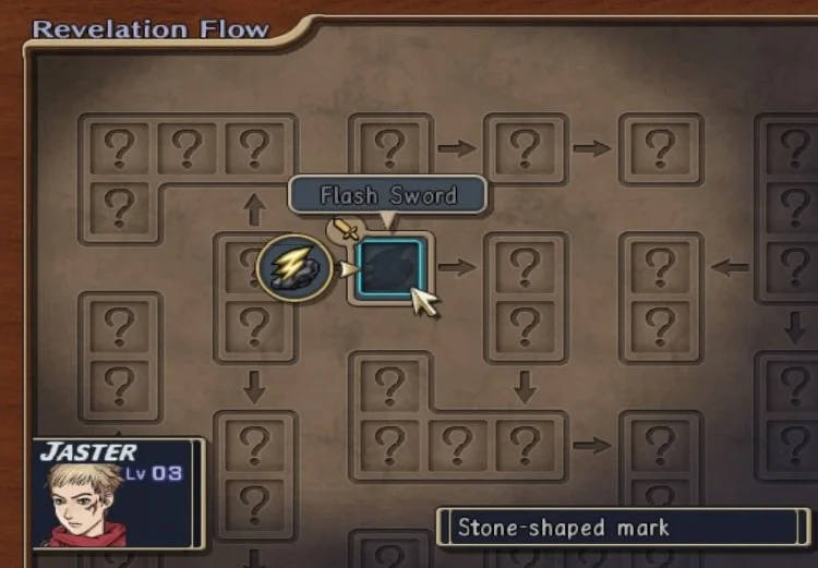 A quanto pare la Sferografia nasce dall'amore di Yoshinori Kitase (director di Final Fantasy X) per i giochi da tavolo e dalla voglia di Tsuchida Toshiro (battle director) di far “muovere delle pedine” dentro ad un JRPG: un percorso visibile e tattile, quasi da conto alla rovescia per l’essere sovralivellati. Da lì l’idea ha messo radici ovunque: la License Board di Final Fantasy XII, il Revelation Flow di Rogue Galaxy e più o meno quasi ogni altro sistema di progressione a nodi degli ultimi anni, particolarmente nei giochi open world tripla A. Ognuno ha preso il concetto di camminare su un grafico e lo ha piegato alle proprie esigenze.